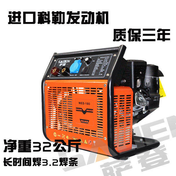 WED-180永磁发电电焊机一体机。本机由于采用了最新永磁材料钕铁硼,从而使本机具有体积小,从而使本机具有体积小(长480mm宽455mm高480mm),重量轻(净重31kg)(特点:全球重量最轻的自发电焊机),容量大,效率高,使用方便,永磁无刷免维护,质量可靠之优点  (小身材,大能量)