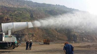 对容易引起尘埃的堆场喷水除尘时,喷出的雾料细小,与飘起的尘埃接触时,形成一种潮湿雾状体,能快速将尘埃抑制降沉;