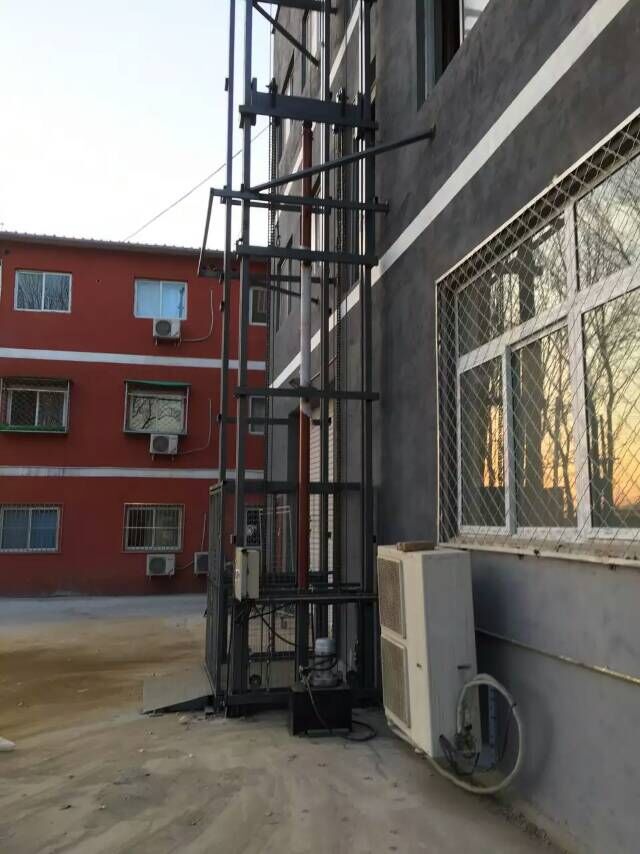 3.液压式升降货梯可以安装在室内,也可安装在室外,减速机升降机一般是安装在室内,顶部要有安装电机减速机的房间,防止漏水烧坏电机。液压式的液压站可放置与室内(加长一下油管即可),比较灵活。