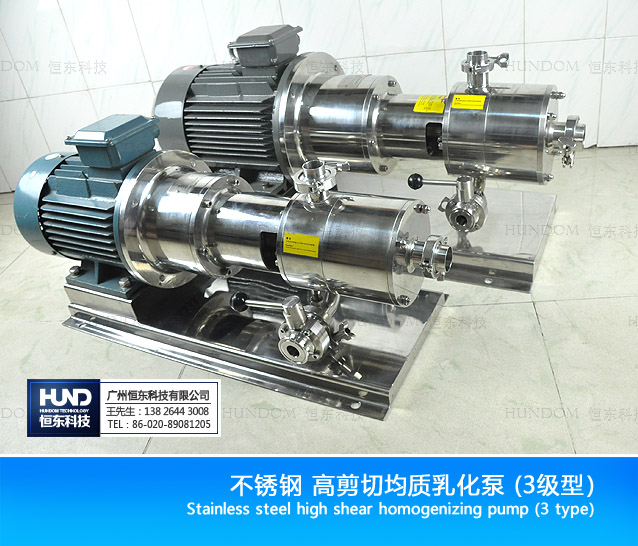 特点: 处理量大,适合工业化在线连续生产,处理黏度范围更广,无批次间生产的品质差异 具有低扬程输送功能, 噪音低,运转平稳、效率更高, 无死角,物料100%通过工作腔,无残留 调速形式: 变频无级调速 高剪切乳化机,适用于分散、乳化、均质、混合、搅拌工艺。