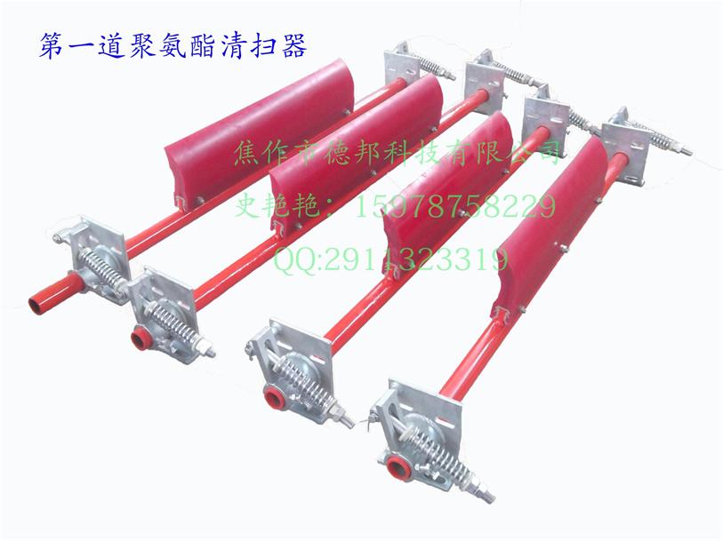 DB-PPU第二道聚氨酯清扫器安装在头部滚筒下部回程输送带平直工作面处。与第一道清扫器配合使用,弹簧的压力能自动补偿因刮刀与皮带磨损产生的间隙,保持刮刀与输送带紧密接触,刮除输送带粘料效果佳,且不损伤皮带。