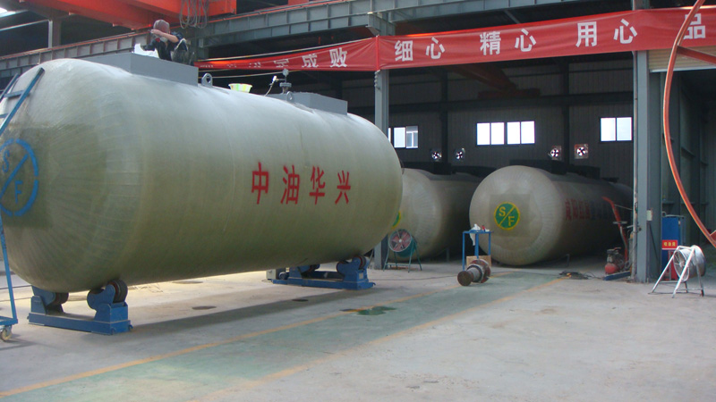 储罐的安装:特别提醒:储罐到安装地后如加油站基础尚未完工,必须将储罐选取安全的空地放置,储罐应存放在无阳光照射、保持通风、干燥的地方;禁止与有害物质混存混放;远离火源。储罐放置的场所,与储罐接触的底部必须将地面上的异物全部清扫干净,为了防止储罐翻转或与其它物体接触造成损伤,必须将运输车辆上防止翻转的支撑台架或枕木支撑在储罐下面,并在台架上铺设10mm厚的减震橡胶及塑料薄膜以防止储罐外层受到冲击损伤,外部则要用防雨布或油布等进行铺盖。