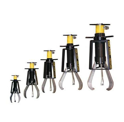 不同于二爪或三爪拉具常规,采用两半圆弧环形爪钩,与被拉卸全面接触,且爪钩外有套箍固定,螺杆顶端镶有钢球,具有操作轻便、快速、平衡、起拔力大,特别适用于轴承与内轴盖间隙特小的场合。同时,也可用于外径在其范围内的短圆柱体齿轮、联轴器、皮带轮的拆卸。