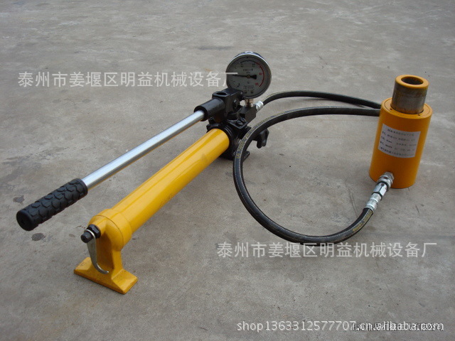 8、使用时先将手动泵的快速接头与顶对接,然后选好位置,将油泵上的放油螺钉旋紧,即可工作。欲使活塞杆下降,将手动油泵手轮按逆时针方向微微旋松,油缸卸荷,活塞杆即逐渐下降。否则下降速度过快将产生危险。