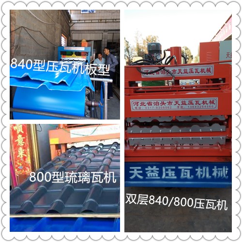 彩钢压瓦机生产的彩钢板产品广泛用于建筑家电和交通运输等行业,对于建筑业主要用于钢结构厂房、机场、库房和冷冻等工业及商业建筑的屋顶墙面和门等,民用建筑采用彩钢板的较少840/828双层琉璃瓦机设备是根据客户的当地需求来制造安装的一种双层琉璃瓦机设备,这里的压瓦机设备是根据客户要求订做的琉璃瓦机设备。不但可以一机二用现在都可以达到一机三用,既能出普通压瓦机也能出琉璃瓦机。彩钢瓦机设备对于现在的市场来说很多型号都成为最通用而且最普通的一种压瓦机设备。琉璃瓦机设备现在做顶瓦用的特别多。而且彩钢瓦机设备是根据客户的要求来做的一种冷压成型机组。现在最为常用的型号有840普通单板压瓦机900普通压瓦机还有828琉璃瓦机设备。购买压瓦机时可以根据您的需求来订做任何一种型号。840-828全自动双层压瓦机