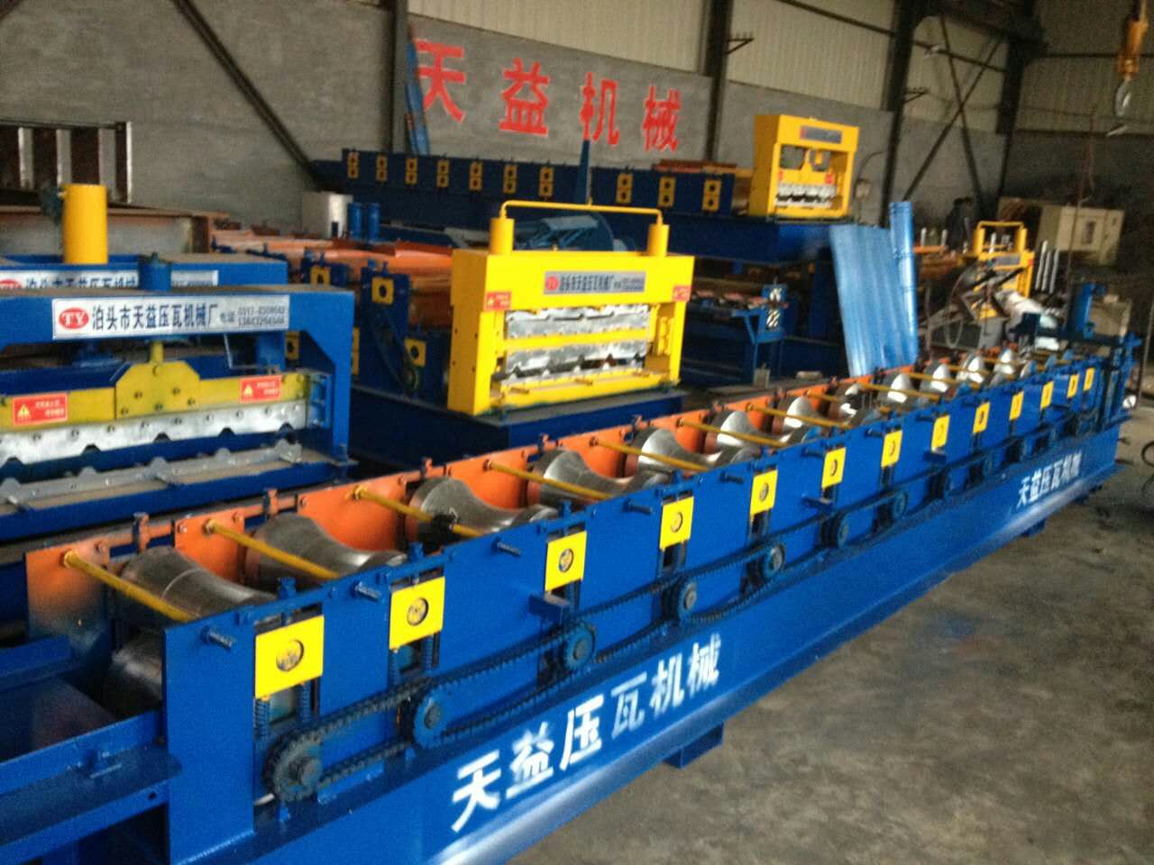本公司专业生产彩钢机械、楼承板成型机、琉璃瓦成型机 、高速护栏设备、双层彩钢瓦成型机、C、Z型钢机、卷帘门成型机、夹芯复合板机、剪板机、折弯机、分条机以及其它彩钢夹芯板辅助设备: