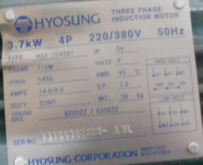 116 HSX1404291 HMA01080000009 7.5KW_4P_220/380V_50Hz_TE-F 87KG