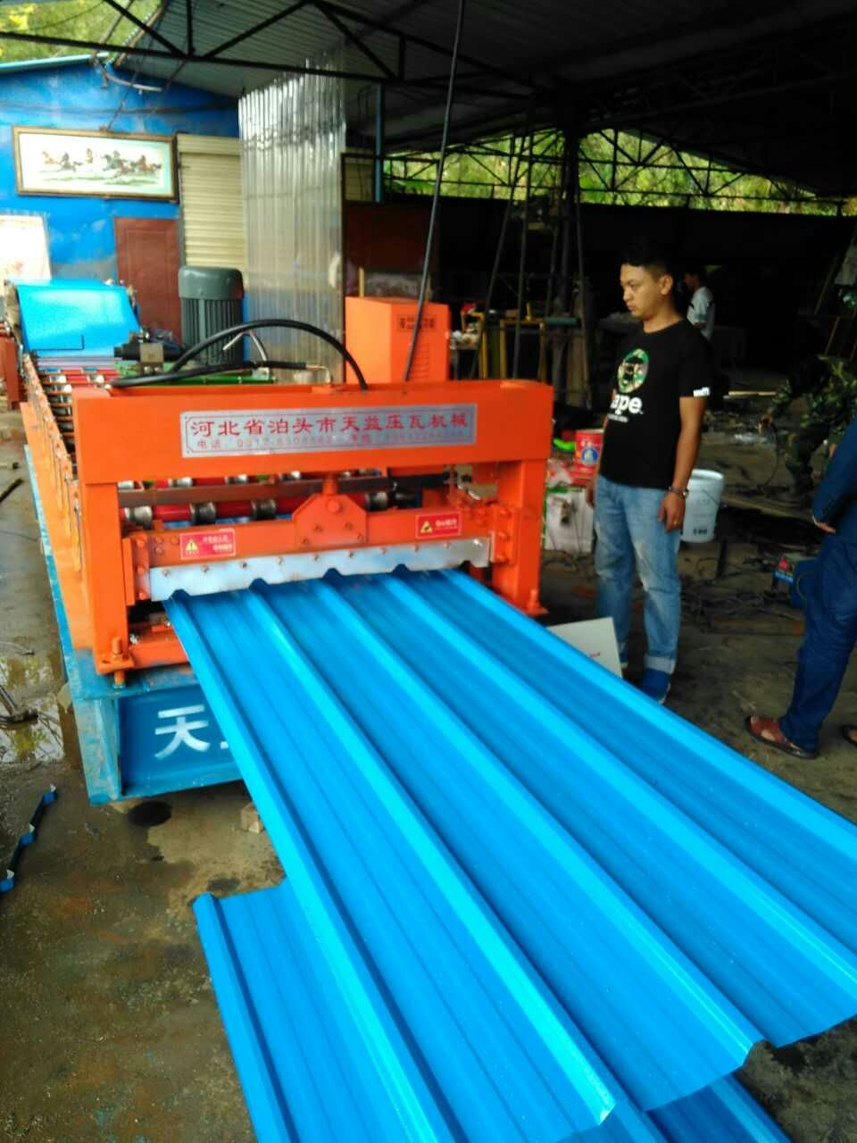 我公司专业生产各种型号彩钢压瓦机设备。在传统彩钢压瓦机的基础上,研发出全自动数控屋面板、墙面板压瓦机、琉璃瓦压瓦机、双层彩钢压瓦机、C、Z型钢机、楼承板设备、车厢板设备、高速护栏设备、夹芯复合板生产线、剪板机、折弯机系列。机器外形美观、结构合理、瓦型标准受到新老客户的一致好评。产品销往国内外各大企业。我公司拥有经验丰富的专业人员和技术娴熟的施工人员为您服务。我们可根据用户的不同需求设计生产各种异型彩钢设备。840/910型双层彩钢压瓦机将两种型号完美的结合在一起,上层为840型,下层为910型,其结构合理,外形美观。具有节省占地空间、操作简单等特点。