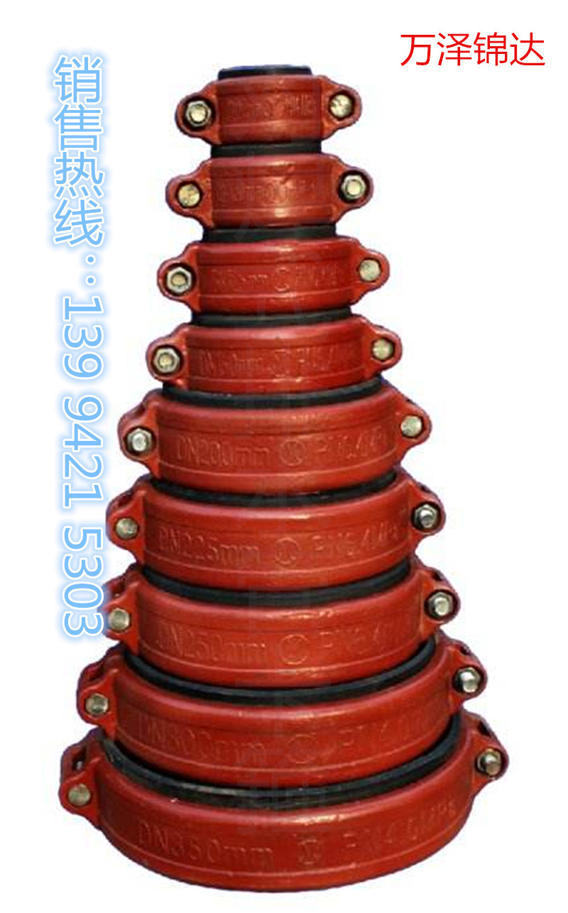 矿用卡箍的技术要求和材质要求:对于高压卡箍的压力要求需要铸造材质必须是球墨铸铁或者铸钢等,一般使用材质是QT450-12比较合适。球化率要求***低2级要求。C型防老化胶圈需用三元乙丙等防老化材质,保证胶圈50年不老化。