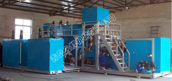 青岛牌机械有限公司 联系电话:13605322692 BFMS技术的工艺原理是在传统的絮凝混合沉淀工艺中,加入磁种,以增强絮凝的效果,形成高密度的絮凝体和加大絮凝体的比重,达到高效除污和快速沉降的目的。磁种的离子极性和金属特性,作为絮凝体的核体,大大地强化了对水中悬浮污染物的絮凝结合能力,减少絮凝剂用量,在去除悬浮物,特别是在去除磷、细菌、病毒、油、重金属等方面的效果比传统工艺要好。由于磁种的比重高达5.O×103kg/m3,混有磁种的絮凝体比重增大,可使絮凝体快速沉降,整个水处理从进水到清液出水可在15分钟左右完成。污泥中的磁种,利用磁种本身的特性使用稀土永磁磁鼓进行分离后回收并在系统中循环使用。以达到高度净化出水并降低污水处理费用的目的。根据在美国采用BFMS作深度水处理的报告,加载磁絮凝体可达到去除26纳米病菌的结果。该工艺以前在工程中应用很少,原因是磁种的回收技术一直没有很好的解决。本技术适用比较广泛,目前已在煤矿、铜矿、铅锌矿等重金属、ss超标矿井水及油田、化工、造纸、印染、生活污水、景观用水、河道治理等行业得到应用并高效运行。