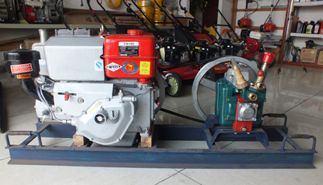 配置:嘉陵本田5.5马力汽油发动机,浙江金华金蜂ZMB240型活塞隔膜泵(台湾物理45L,三缸柱塞泵)工作压力高,流量大,效率高,工作稳定。
