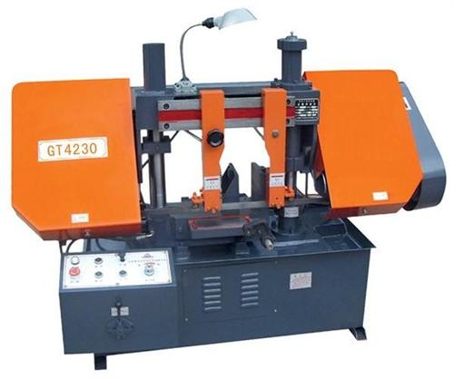 床身为铸铁件,固定在底座上,立柱由一大小圆柱组成,大圆立柱作为锯架动的导轨,是用以支撑锯梁上下升降运动,并保证精确的导向,小圆柱起辅助作用,从而保证锯条的正常切削。中间为夹料虎钳和手动送料机构,虎钳前方连接有承接成品件的工作台,左侧的夹紧装置为夹紧丝杆穿过液压夹紧油缸杆内孔,转动手轮或按动按钮,使左钳口左右运动。2:适用场合:主要应用于机械,锻造,加工等的下料。金属带锯床首选顶峰机械,专注于金属切削产品的研发,设计,制造及销售全方位服务,顶峰机械期待你的来电!
