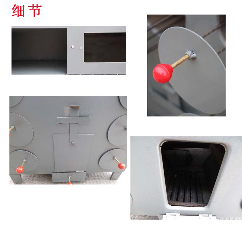 产品特点:加厚型节能环保柴火玉米烤炉,采用二层整体板材加一层隔热物质所制,大大提高热效率的同时,更让操作者不会因烤炉外表太热而难受,炉肚容量大,入口小,相对普通的烤炉要节能30%以上,吸氧效果极佳,火力均匀,不会因为火太大造成烤焦、烤糊等现象,孔内以密封钢管为加热导体,让火源与食品百分百完全隔离、在一定温度下全方位持续均匀烘烤,速度快、质量好,可移动、色香味俱佳,安全环保营养,完全抛弃街头大铁桶的缺陷:煤烟气、黑焦点、SO2、笨及衍生物和其它化学污染源等有害物质,顶层带有大容量的传热加热保温柜,能让您在有限的时间里烤出更多美味的食品。