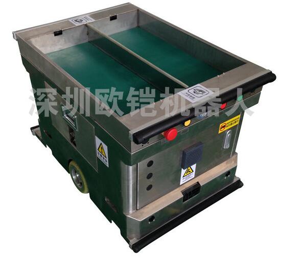 不锈钢背负式AGV小车,以不锈钢材质打造,不仅车身坚固耐用,而且安全防尘;该车型主要用于无尘车间产线的物料周转运输,当物料成品放入以后,车体上感应器都识别到物品,将会自动启动开始搬运周转工作。此功能的应用将大大提高生产线上的物料物流运输周转效率,节约人力成本,提高企业效益凸显。