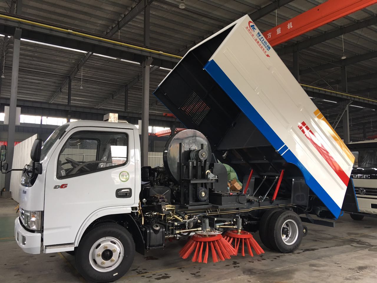 采用刷洗和高压清洗的扫洗结合、垃圾收集、污水回收、液压倾翻卸料的作业方式对路面