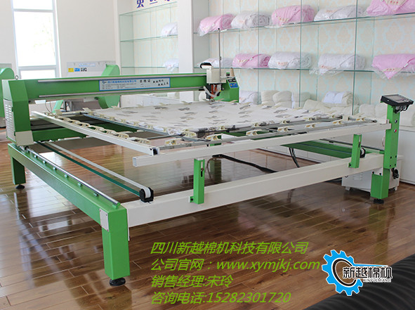 01.省时省电小功率电动机整机最低2个kw动力即可正常使用。各个传动系统均采用超轻高材质零部件、及轻负荷传动技术。产量最高可达5分钟/床:根据被子尺寸重量、原材料品种而定。用于绗缝棉、化纤、羊毛等各种天然和人造纤维制作的被子。
