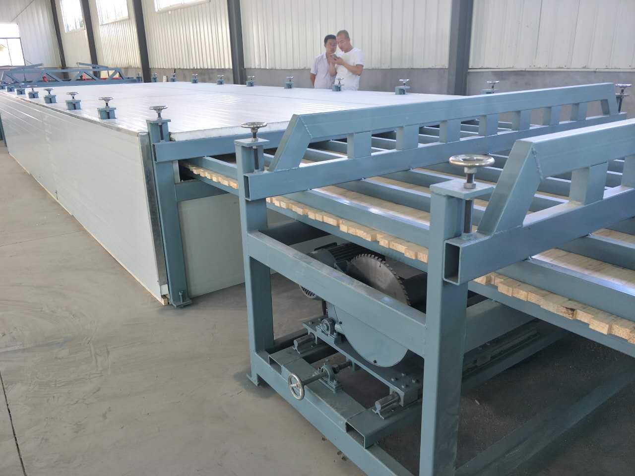 5 根据实际要求调整裁断锯与挡板之间的距离,已达到木板的宽度要求。