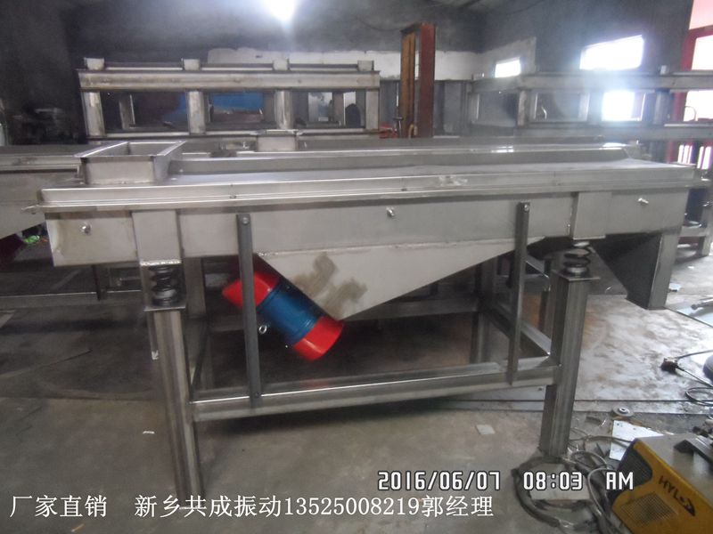直线筛宽度 长度按需定做厂家新乡共成振动设备有限公司欢迎新老客户来电咨询选购全密封的振荡筛、长筛子产量大,筛选分级效果好。