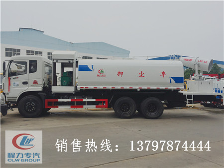 抑尘车,也被称为“PM2.5治理车”、雾霾治理车、喷雾车、绿化喷洒车、降压除尘车,后工作平台上所带的风送式喷雾炮筒,风力强劲、射程高、穿透性好,上下左右采用遥控操作(可在驾驶室内操作),安全方便。 程力专用汽车股份有限公司,多功能抑尘车是集绿化洒水和喷雾抑尘于一体,主要用于治理雾霾、PM2.5、秸秆燃烧等空气中的悬浮颗粒,是各环卫部门、园林绿化、社区广场、工业建筑等场地除霾压尘的车型,同时该车也可用于道路冲洗、树木浇灌、喷洒农药、温水运输、应急消防等。
