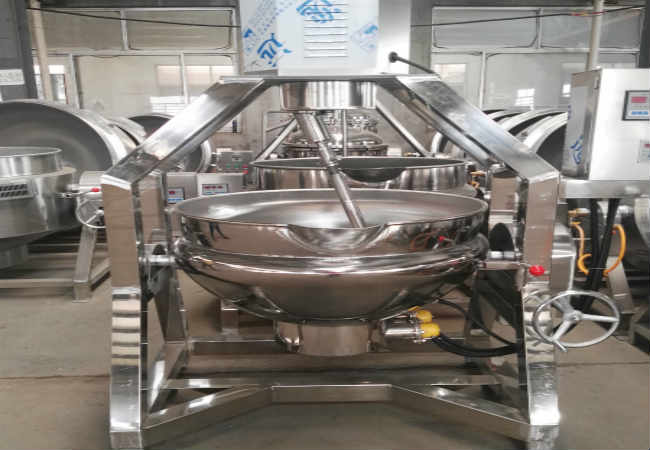 行星搅拌炒锅采用一次性成型的不锈钢锅体,保证了锅内的平整光滑,采用蒸汽、液化气、天然气、电加热等加热方式,锅边采用弹簧式,锅底采用自重式,使锅体与搅拌叶片紧密接触,使物料搅拌均匀。不粘锅,动力采用日本无机调速器与涡轮,蜗杆,减速机的完美结合,传动部分公转自转的不整数传动比,使锅内搅拌无死角,使用先进的传动与密封接够,使传动部位与锅内洁净、卫生, 火锅底料行星搅拌炒锅采用液压式翻臂,翻锅出料,省力、省时、省工、不失为性能优良的食品化工制药加工设备。