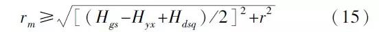 根据相关数据,由式(14)、(15)和(16)可得Hyb≤0.9m,rm>3.04m,b<1.2m,进而可取Hyb=0.8m,rm=3.1m,b=1.1m。
