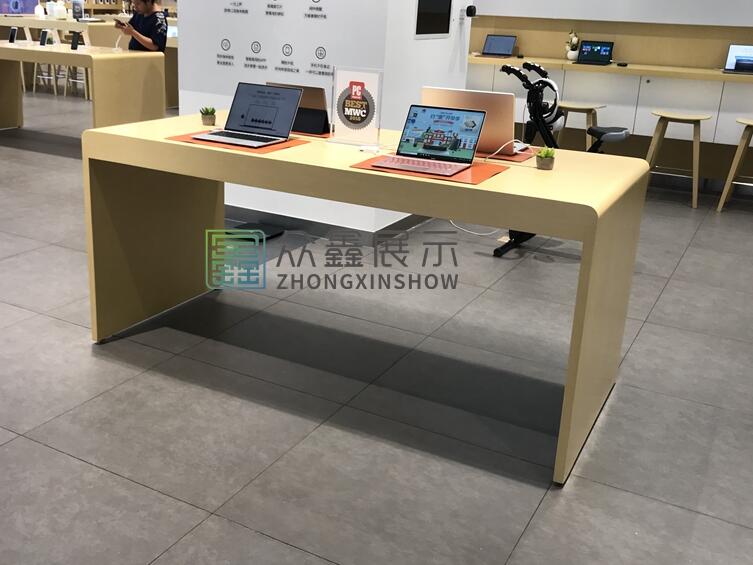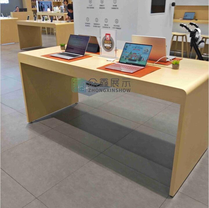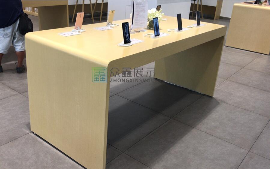 华为手机体验台是华为专卖店内的一款展示手机、方便用户体验的一款展示体验台。该款产品采用1.2mm304不锈钢拉丝板经过剪裁、冲压、焊接、打磨、防指纹处理后作为底座,台面白橡木免漆板也做过封釉处理,整个体验台看起来简洁,高档。华为体验台台面开有十个出线圆孔,圆孔套有橡胶垫,以防止出线孔磨损充电线。华为体验台台面背面有个可拆卸的线盒,该线盒采用铁质冷轧板一体冲压成型,喷黄色哑光涂层,线盒内预装了电源插座,配合一拖六或者一拖八防盗器使用,这样顾客在体验新上市华为手机的时候也不需要担心手机没电和担心手机会丢失的问题。华为体验台尺寸有1.6米、1.8米和2米,客户可根据店面尺寸来订购需要的华为体验台。
