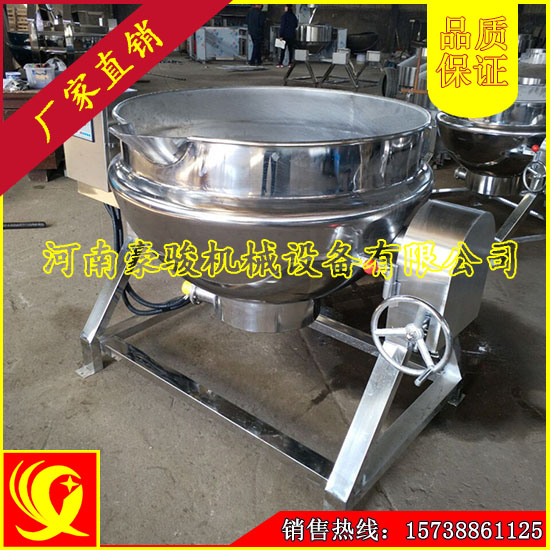 横轴搅拌夹层锅设备特点:.本设备为真空浓缩锅,槽型锅体,两端椭圆封头,半椭圆封头及半圆柱结构,夹套加热,变频器调速搅拌,可倾夹层锅,搅拌桨刮壁翻滚物料,使物料搅拌均匀且不粘锅。.用于高粘度物料蒸煮、配制及浓缩产品。该产品采用优质SUS304不锈钢制造,外形美观,全过程由按钮控制操作,配制先进,瀍河回族区夹层锅,功能齐全,操作简单等优点,对敏感性物料具有广泛的适应性。广泛用于豆沙、果蓉、果酱、枣泥、豆馅等食品加工及中药等高粘度物料煮制等。