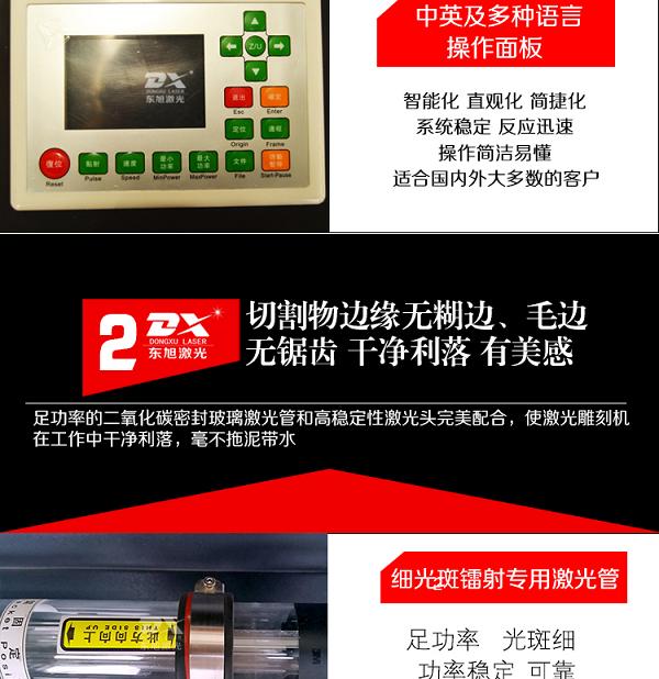 公司产品涵盖激光雕刻、激光切割、激光裁剪、激光打标、激光雕版等几大系列的激光设备,东旭激光凭借着多年的经验逐步研发了适用于各行各业的专业机型,并以其优异的配置、稳定的性能、鲜明的性价比和优质的服务,被行业内和国内外老客户所认可。公司与全国数家有实力的工艺品加工、服装制作、广告制作等公司成立了良好的合作关系,并不断优化产品功能和服务措施,力争为客户创造可靠耐用的激光加工工具和更加优质快捷的服务。本着“世界在变,服务不变”的服务宗旨,努力于激光设备制造行业。