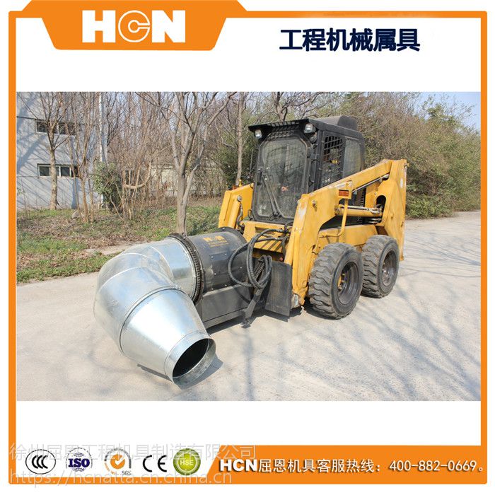 除尘机主要挂装滑移装载;能清除树叶、纸屑等轻小杂物;出风口可改变方向,方便适应不同的工作环境;出风口易更换,可定制。