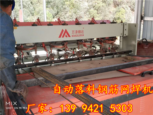 主体机架采用较厚钢板与型钢焊接而成,使主体结构更为牢固、紧凑。纬丝落料机构结构新颖,采用步进电机自动落料,使纬丝放置更加准确。 拉网采用了伺服电机拉网装置,使拉网尺寸更加标准、准确。可焊接网格品种多样化。纬向网格调整相关的零部件均为可调整,经向网格调整微电脑控制,可设置不同的网格。 焊接采用新型封闭式水冷焊网变压器,电压调节范围宽。为了适应用户主电力变压器的容量和减小电流冲击,万泽锦达焊接电力电子控制采用了一次焊接分控送电的方法,即在焊接同一排纬丝时,将焊接变压器分开工作。焊接电力电子控制系统采用同步控制技术,焊接时间与分控焊接均由数字化集成电路组成,控制精度高性能稳定。电动机作动力为纵线和横线交叉点提供柔性的焊接压力,与国内其它品牌压缩空气作动力的焊接设备相比,焊接平稳、飞溅少、焊接速度提高,初期投资、运行维护费用减少,厂房内噪声小。从料斗自动取料