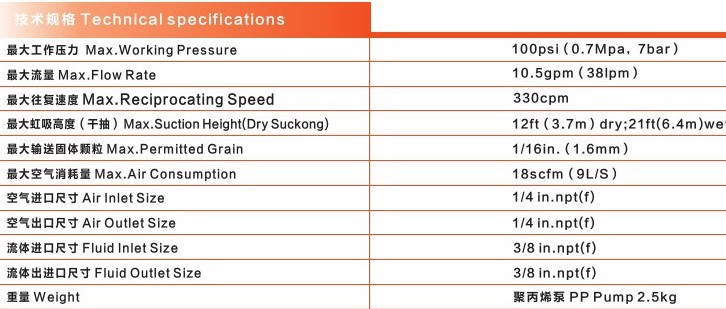 1由于用空气作动力,所以流量随背压(出口压力)的变化而自动调整,适合用于中高粘度的流体。而离心泵的工作点是以水为基准设定好的,如果用于粘度稍高的流体,则需要配套减速机或变频调速器,成本就大大的提高了,对于齿轮泵也是同样如此。