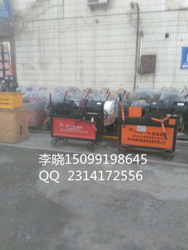 HGS-40B型钢筋直螺纹滚丝机。主要用于建筑工程带肋钢滚轧直螺纹丝头,是实现钢筋连接的关键设备。可加工直径16-40mm的HRB335和HRB400级带肋钢筋。