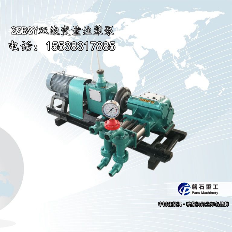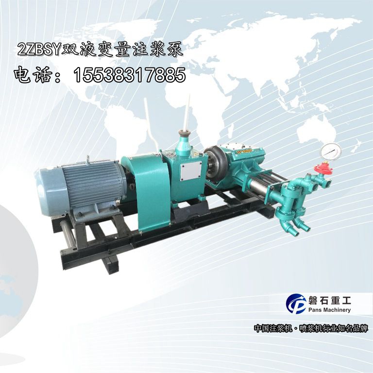 2ZBSY双缸四档变量双液注浆泵是我公司根据国家基础设施建设的需要而开发的一种新型产品。广泛应用于隧道、地铁、道路、桥梁、水坝、矿山建设和高层建筑的地下工程防水,地基加固,煤矿瓦斯封堵,巷道密封,塌方修复工程及边坡锚杆支护等各类注浆施工工程,该系列产品具有技术先进,操作简单,四档变速、双缸双液、功能完善,维修方便等优点。