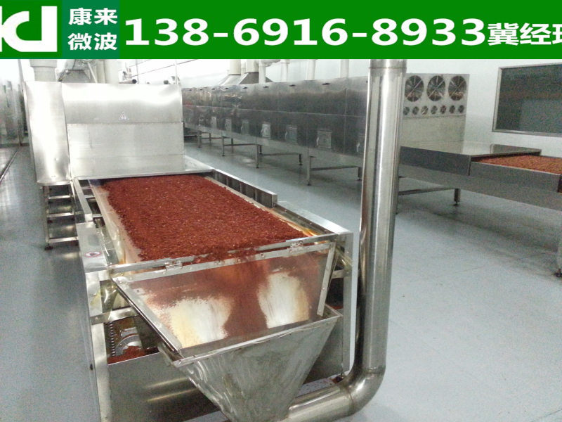 微波辣椒碎烘干设备是我公司针对辣椒制品开发的一款专用烘干灭菌设备,现有多家韩国企业和国内知名企业采用,赢得客户赞誉。其特点:高效节能、灭菌效果好、(达到出口标准)操作简单,维护费用底、安全卫生。该设备保修一年,(保修期间不收任何费用),终身免费技术服务!适用于胡椒粉、辣椒粉、卡拉胶粉、大豆粉、芝麻粉、营养保健品、休闲食品、农副产品、各种肉制小包装、鱼片、鱼胞等的烘干、脱水、杀菌、保鲜、防霉、膨化微波设备在调味品(鸡肉香精、牛肉香精、猪肉香精、酵母精、海鲜精、海鲜高汤精、海鲜高汤粉、排骨精、排骨高汤精、排骨高汤粉、香辛料、辣椒粉)等的加热、干燥与杀菌处理。也适用于对脱水蔬菜、海产品香料(海带、紫菜、鱼、虾)的干燥。