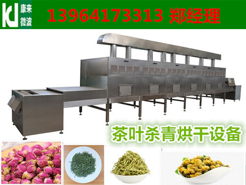 微波是利用物料自身水分形成蒸汽环境,在加上高频微波的震荡作用,杀青效果好,物料 色泽鲜艳,同时在杀青环节失掉一部分水分,为节省了烘干成本。需要先用微波杀青,杀青完毕,经热风烘干设备烘干一次完成成品,干花干度均匀,色泽青翠,完全不破坏和改变物料营养成分,同时具有杀菌功能,经微波烘干的菊花含菌量完全可以达到QS食品认证要求的卫生标准。而采用微波烘干设备对菊花花朵进行烘干,可很好地保持花蕾原有的颜色、香味及营养成分。