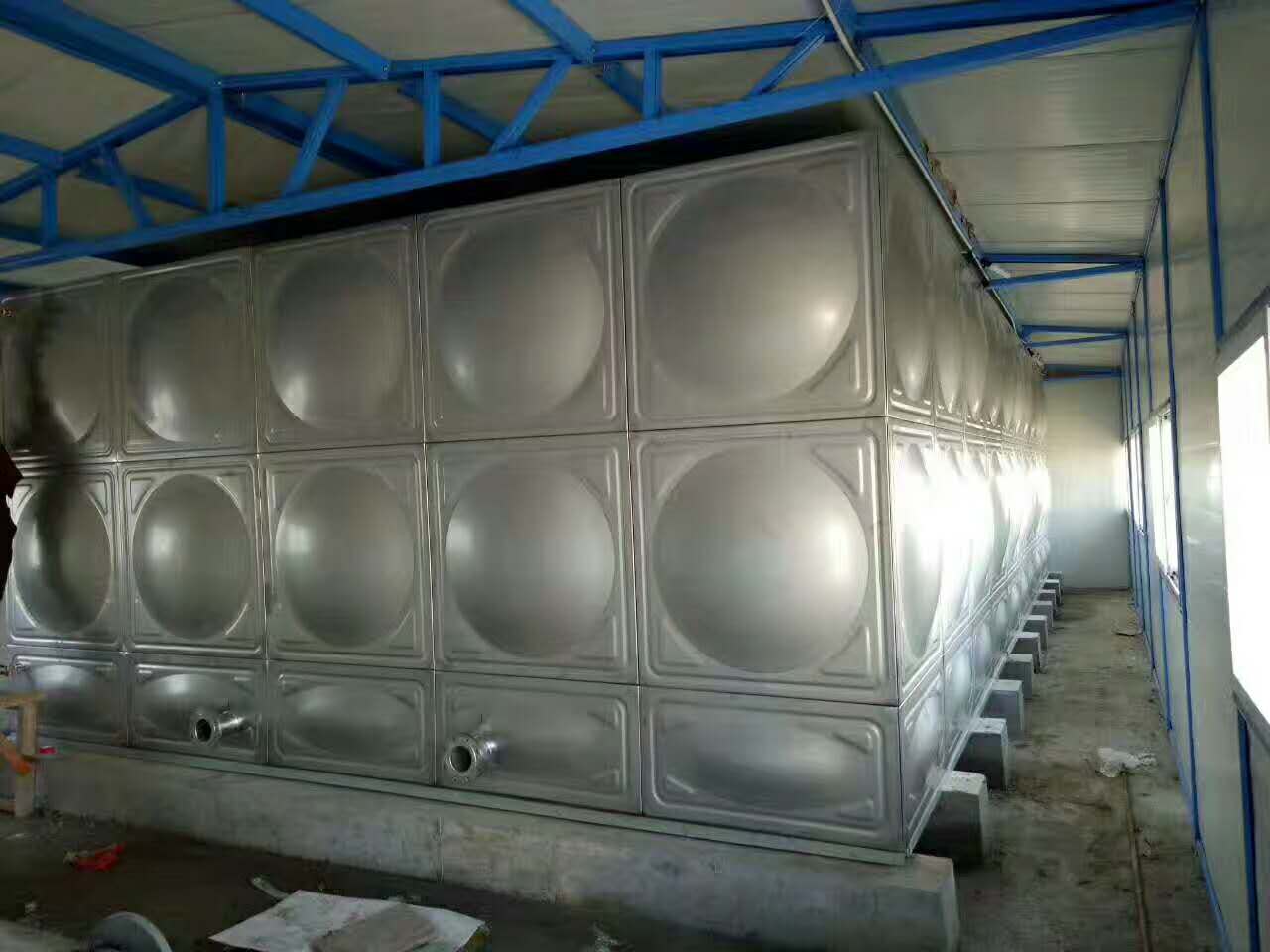 不锈钢水箱是用不锈钢模压板,现场经氩弧焊接成一体,内部设置不锈钢拉筋和支撑加固。除槽钢底座外,其他全部为不锈钢材料制成。不锈钢水箱有以下几方面优点: