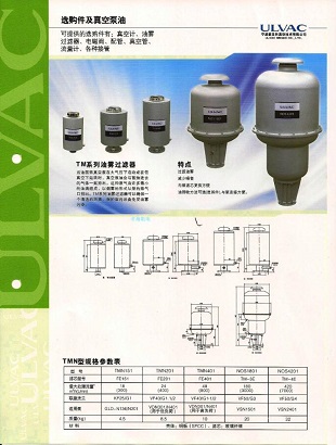 ULVAC爱发科油雾过滤器芯NOS901/1801/4201