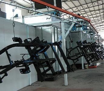 底盘尾架等部件,前处理后喷涂底漆和面漆。尾架为铸造件,喷漆前需进行预烘干,以消除表面粗糙空隙里杂质和空气,烘干110度,以快速辐射烘干为主。