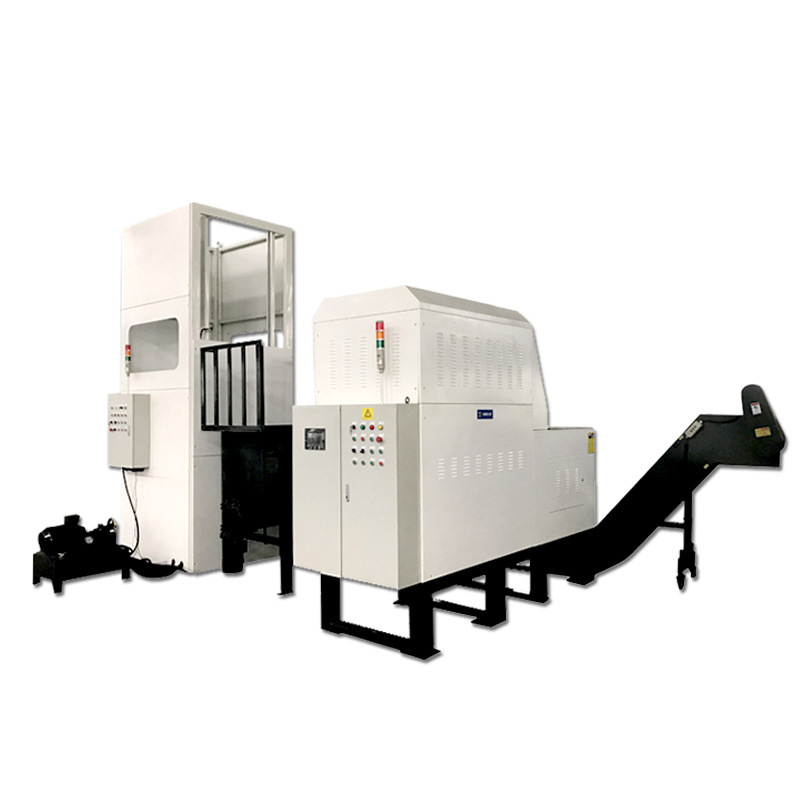 恩派特生产的铁屑压块机为卧式设计,横向压缩,压缩室配置了粉料机构,可以将长条状的刨花粉碎成小的颗粒,从而节省了一台破碎机。