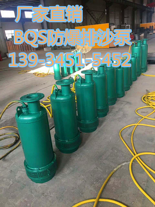BQS(W)矿用隔爆型排污排沙潜水电泵,是泵和电动机组合一体的电力排灌设备,外型美观,结构简单,密封性能好,性能稳定,寿命长,安装使用方便,且可以长期在水下连续作业,被广泛用于煤矿立井、斜井及井底散煤泥地自动化排水。内装式电泵,水由电动机夹层中流过,有效的延长了电泵的使用寿命;外装式电泵,叶轮采用双流道大过流结构,运行平稳,排污能力强,防缠绕,无堵塞现象,并且有体积小,重量轻,携带方便的特点。