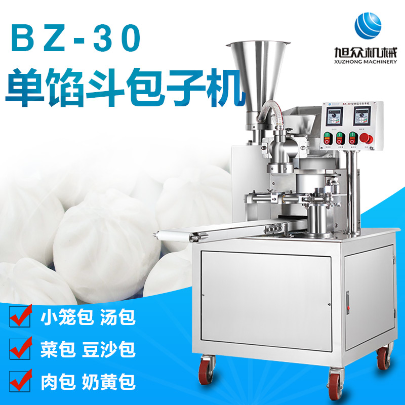 BZ-30型单馅斗包子机采用双变频控制,面、馅大小调节自如、使用方便。产品成型,所出产品外形大小统一、表面光滑、花纹整齐,远比手工包美观。