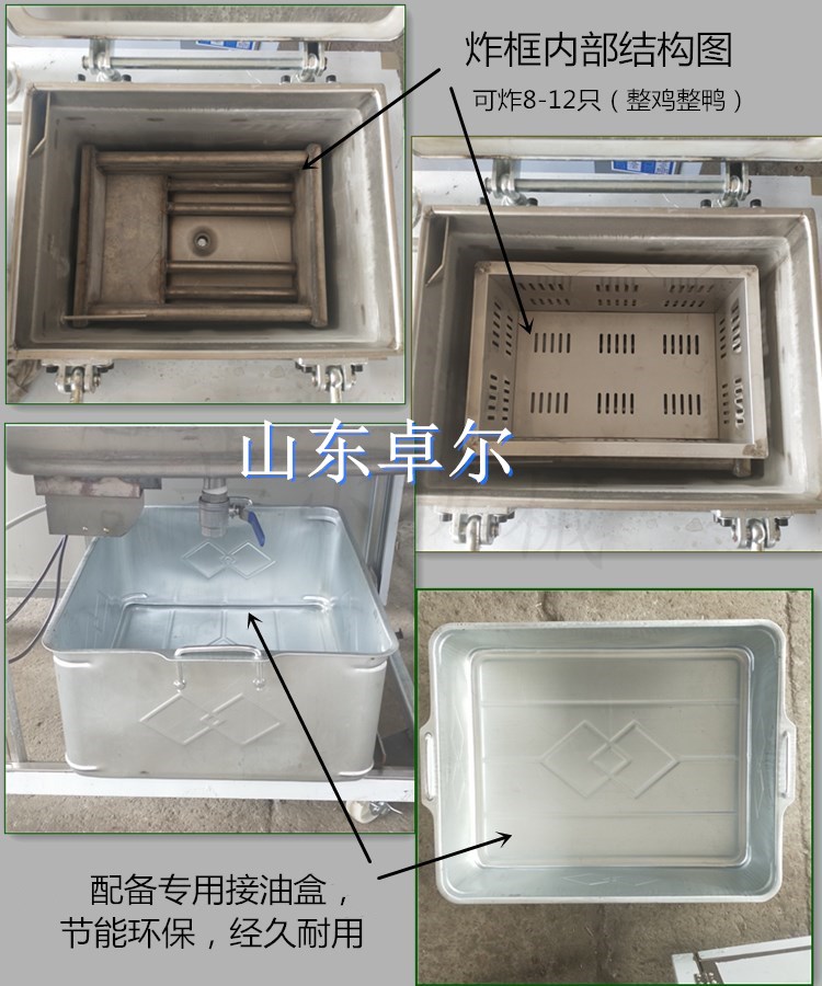 可以放40L油,一次性可以炸8-10只鸭子或鸡(1公斤左右重)