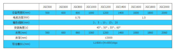 设备规格按机宽尺寸分HF300-3600型。机宽超过1800mm,则做成并联机。耙齿栅隙分为1mm、3mm、5mm、10mm、20mm、30mm、40mm、50mm等各种规格,选型由过水量、提升高度、固液分离总量和所分离物质的形状、颗粒大小来选择,同时选配不同的材质。