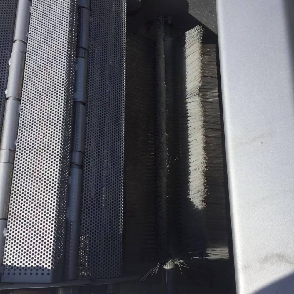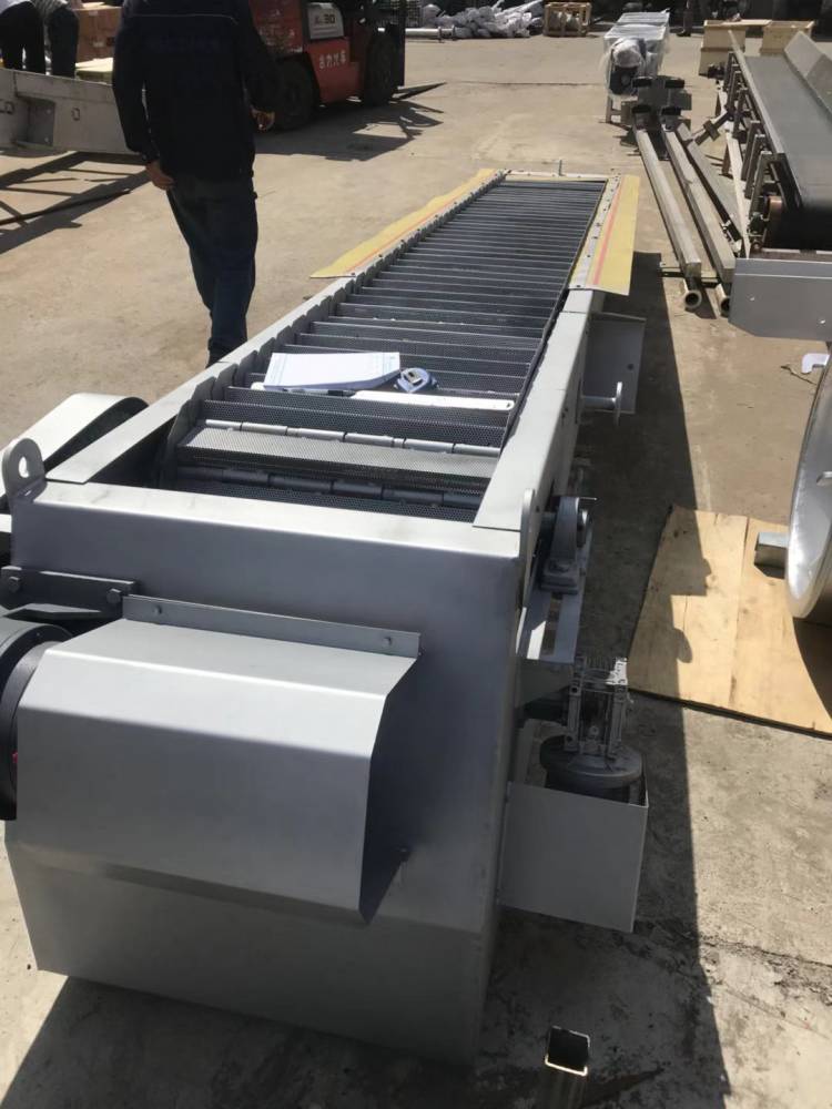 耙齿链运转到设备的上部时,有梅花轮和弯轨的导向,使每组耙齿之间产生相对的自清运动,绝大部分固体物质在重力作用下自由落下,另一部分则依靠清扫器的反向运动把粘在耙齿上的杂物清扫干净。