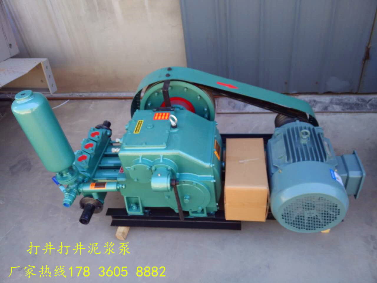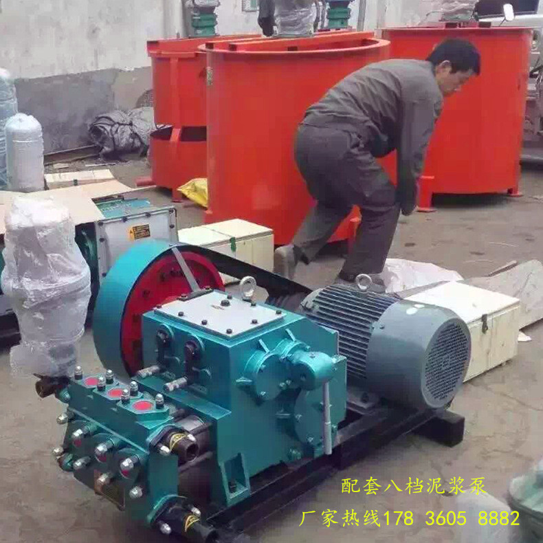 泥浆泵为卧式三缸往复单作用活塞泵,可变换八种不同压力和流量。排量和孔深根据用途随意调节,用于地质岩心钻探工程中向钻孔输送冲洗液泥浆清水皂化夜.深可和1500米钻机配套使用,也可用于水泥浆灌注,本泵耗能少,操作简单,分解性好,易于搬迁。