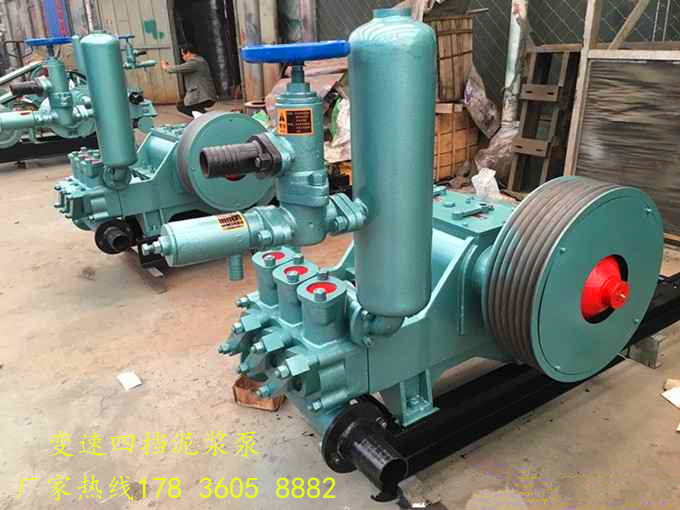 BW250型(高压注浆泵)泥浆泵为卧式三缸往复单作用活塞泵,该泵具有两种缸径和四档速度。排量和孔深根据用途随意调节,深可和1500米钻机配套使用,也可用语水泥浆灌注,本泵耗能少,操作简单,分解性好,易于搬迁。