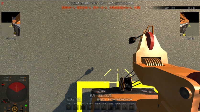 2、软件中设置汽车起重机左右后视镜,便于受训者观察机器与周围物体的相对位置。