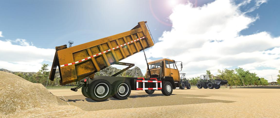 1、作业场景使用Unity3D引擎的灯光系统和地形系统,实时渲染,使得更加真实,例如工作大灯、驾驶室市内灯、转向灯、应急双闪灯效果。