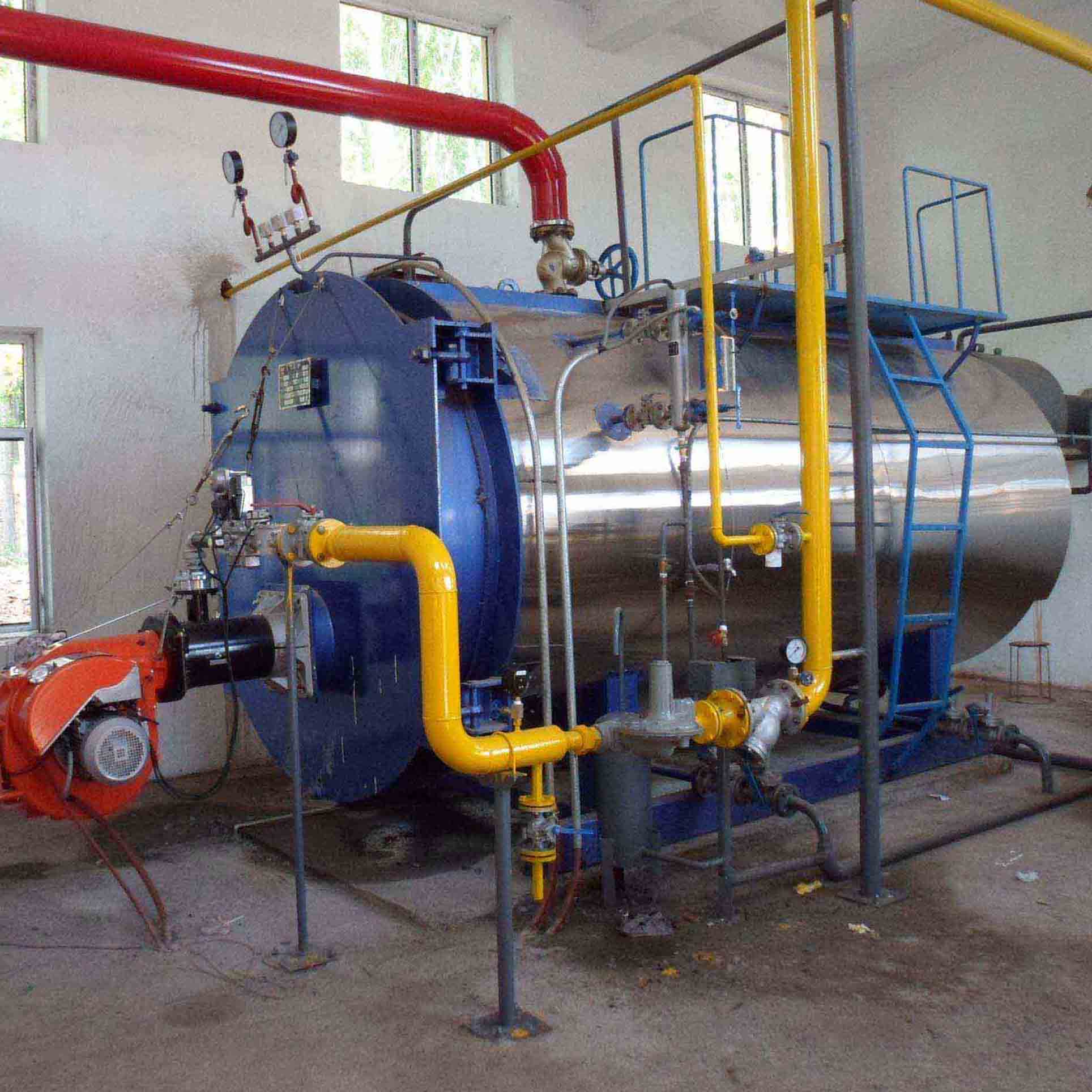 (1)、科学设计,结构合理----锅炉本体采用湿背式三回程、全波纹炉胆、螺纹烟管结构,具有良好的热伸缩性;管板与筒体采用板边连接结构,本体主要焊缝为对接结构,全部采用埋弧自动焊焊接。