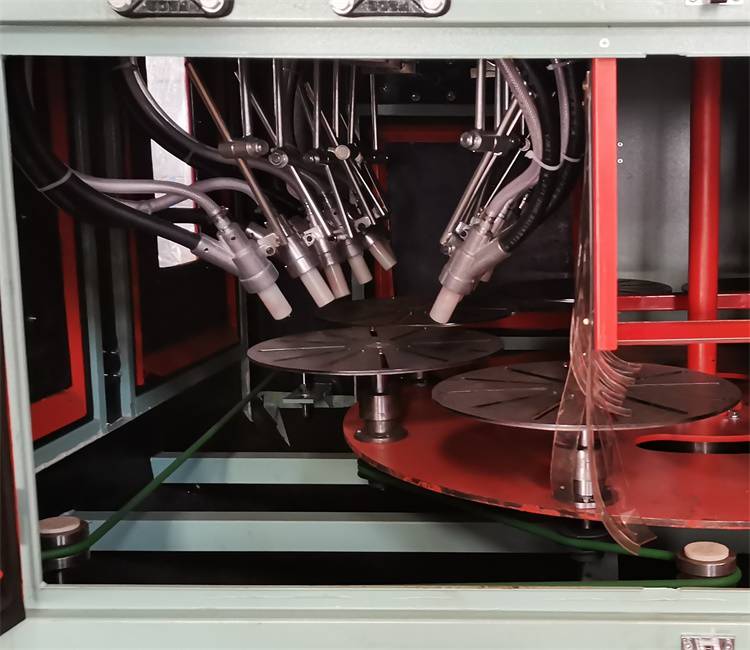 7.设有12个工位,大转盘间歇运作,小转盘自转,喷枪可水平,垂直,自由调节, 喷砂时间可根据喷砂效果自行设定;